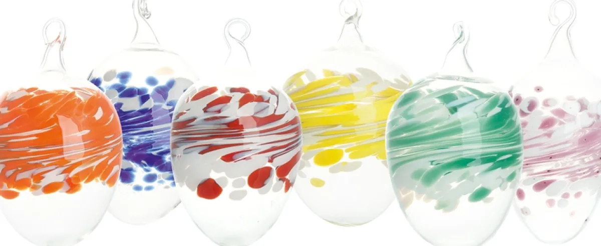 Mundgeblasene Ostereier aus der Glasbläserstadt Lauscha machen jeden Osterstrauch zu einer individuellen und geschmackvollen Frühlingsdekoration. Die hochwertigen Glaseier werden von erfahrenen Glasbläsern vor der Flamme geblasen. Noch im heißen Zustand verbindet sich farbiges Glasgranulat mit dem transparenten Körper. Das Set besteht aus 6 Glaseiern mit verschiedenfarbigem Granulat. Eine schöne Deko-Idee für den Frühling, die sich auch wunderbar als kleines Geschenk und Mitbringsel eignet.