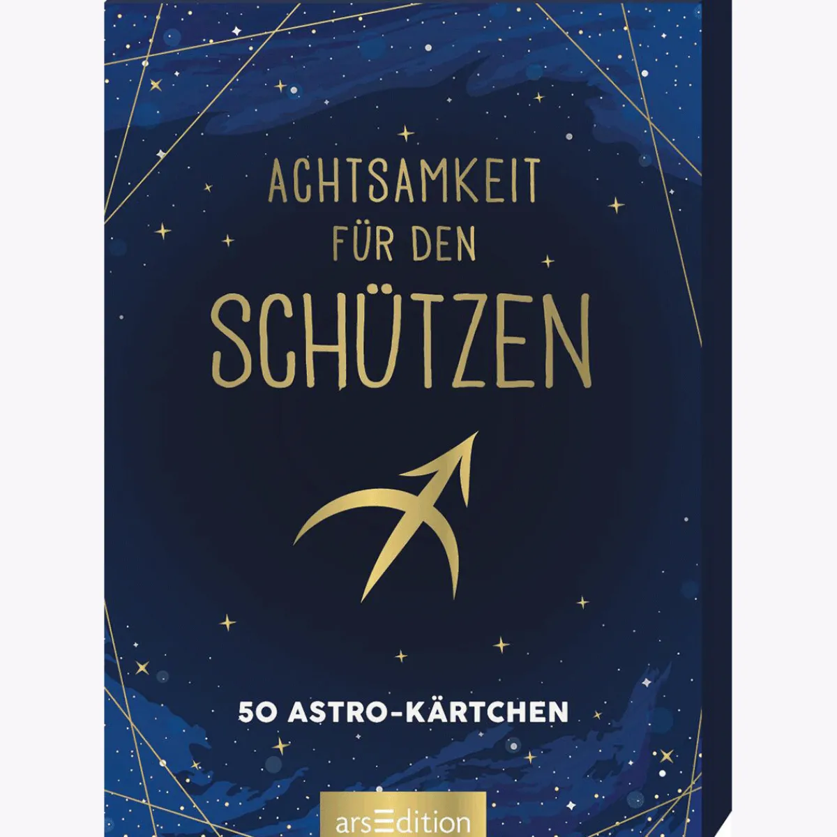 Was steht in deinen Sternen? – Achtsamkeitstipps für das Sternzeichen Schütze (23. November – 21. Dezember) Wassermänner gelten als unabhängig, Widder als willensstark und Stiere als verlässlich – doch welche Einflüsse hat dein eigenes Sternzeichen auf dich? Und wie kannst du damit im Alltag achtsam umgehen? Wage mit dieser Kartenbox einen Blick in die Konstellation der Sterne, unter denen du geboren bist, verstehe deine Beziehung zu ihnen und lerne einige der Geheimnisse des Universums kennen. Ziehe einfach eine Karte, wann immer dir danach ist, und du erfährst auf spielerische Weise viel Wissenswertes über dein Tierkreiszeichen. Angefangen von typischen Eigenschaften über Inspirationen für mehr Achtsamkeit und Spiritualität im Alltag bis zu praktischen Tipps für Freundschaften und Beziehungen, Gesundheit, Zufriedenheit im Job oder den Umgang mit Finanzen.Die Magie deines Sternzeichens: Dein Element, dein Planet, dein Aszendent, deine Farbe und Vieles mehrWie Schützen innere Ruhe finden: Liebevoll zusammengestellte Zitate, Lebensweisheiten und Mantras, speziell für dein SonnenzeichenAstrologie für den Alltag: Besonders geeignete Entspannungsübungen, Rezepte und Ideen für dein SternbildSchönes Design für die Handtasche:_50 stimmungsvoll gestaltete Inspirationen für jeden TagHochwertige Verpackung: In der hübschen Box sind die Karten gut verstaut und begleiten dich überallhin Die Kraft deiner Sterne verstehen Die Sternzeichen-Kartenbox ist ein inspirierendes Geschenk für alle Schützen – zum Geburtstag, als kleines Mitbringsel für jeden Anlass oder als Aufmerksamkeit für sich selbst. Für die beste Freundin, Kollegin, Mutter oder Schwester und alle, die mehr über den Einfluss des Sternenhimmels auf ihr Leben erfahren möchten.