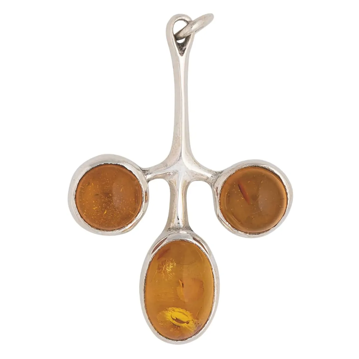 Bernstein, auch das Gold der Ostsee genannt, ist ein wundervoller Stein für die Schmuckherstellung. Diesen Kettenanhänger zieren drei orange-goldene, leuchtende Steine mit sichtbaren Einschlüssen, gefasst in glänzendes 925er Sterlingsilber. Der Schmuck stammt aus einem kleinen Familienbetrieb in der Bretagne, der in den 50er-Jahren von Pierre Toulhoat (1923-2014) und seiner Ehefrau gegründet wurde und der heute von seinem Sohn Yves, seiner Tochter Marie und seinem Enkel Vincent geleitet wird. Die Erben nutzen häufig einen der unzähligen Entwürfe von Pierre Toulhoat und fertigtn weiterhin bretonischen, religiösen und zeitgenössischen Schmuck in Gold und Silber an – vieles davon mit Materialien aus der Bretagne. Pierre Toulhoat wollte nach der Schule eigentlich ein Kunststudium beginnen, arbeitete aber aufgrund des Kriegs zuerst einmal als Zeichner, Journalist, später als Glasmaler. Schließlich ging er nach Paris, um seine Glasmalerei in den Werkstätten von Bony und Le Chevalier fortzusetzen. Nach getaner Arbeit bereitete er sich in Abendkursen auf die Aufnahmeprüfung an der »École Nationale Supérieure des Arts Décoratifs« vor, um endlich seinen Berufswunsch in die Tat umzusetzen. 1951 kehrte er mit einem Diplom in Bildhauerei in der Tasche zurück nach Hause und wurde einer der berühmtesten Kunsthandwerker der Bretagne.