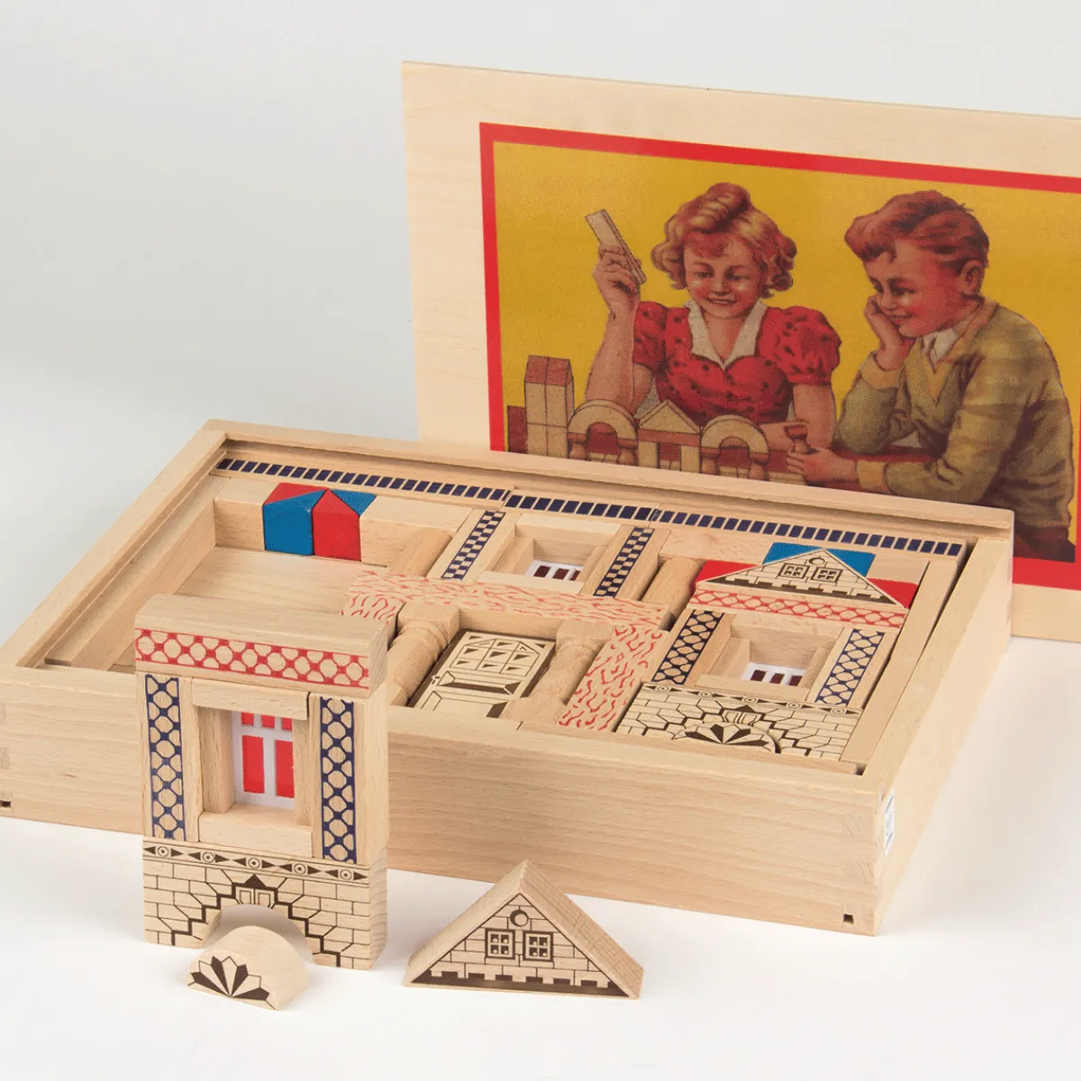 Spitzenqualität, made in Germany: Seit 1860 sorgen liebevoll gestaltete, einzigartige und hochwertige Holzspielsachen aus dem Erzgebirge für ein fantasievolles Spiel großer und kleiner Kinder. Dieser Baukasten mit wunderschönem Retro-Motiv fördert mit seinen 79 Teilen aus feinstem Buchenholz die Kreativität von Kindesbeinen an. An erster Stelle steht bei der aufwendigen Produktion das Wohl der Kleinen: Nur zertifizierte, schweiß- sowie speichelechte Lacke und Farben deutscher Hersteller werden verwendet. Alle Produkte entsprechen der Spielzeugrichtlinie EN 71. Qualität, Tradition und naturnahe Herstellung verbinden sich hier zu einem einzigartigen Produkt, das ein bleibendes Lächeln in die Gesichter der Kleinsten zaubert. Geeignet ab 3 Jahren.