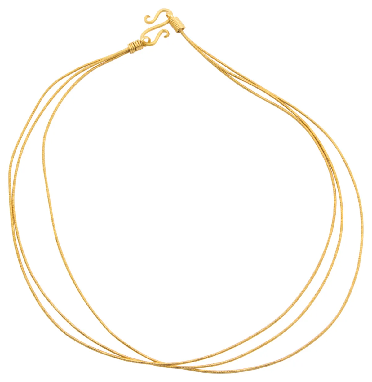 44 cm inkl. S-Haken, 3 Silbergarn-Fäden Sterlingsilber mit 10/000 Goldplattierung.