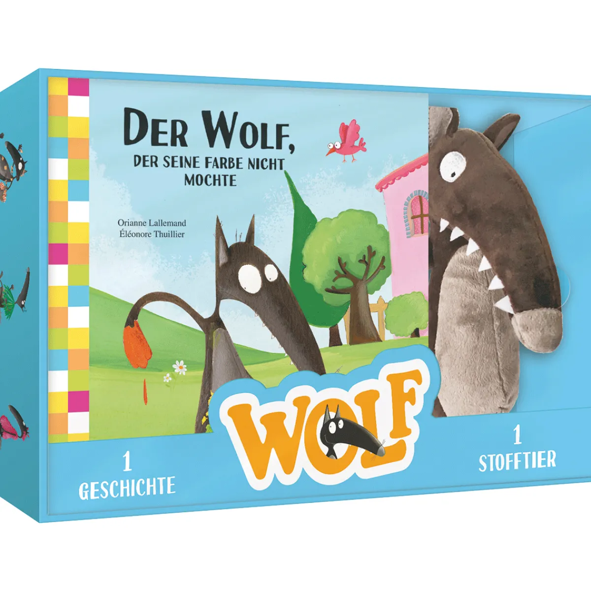 Waschbär Der Wolf, der seine Farbe nicht mochte. Box mit Buch und Stofftier.