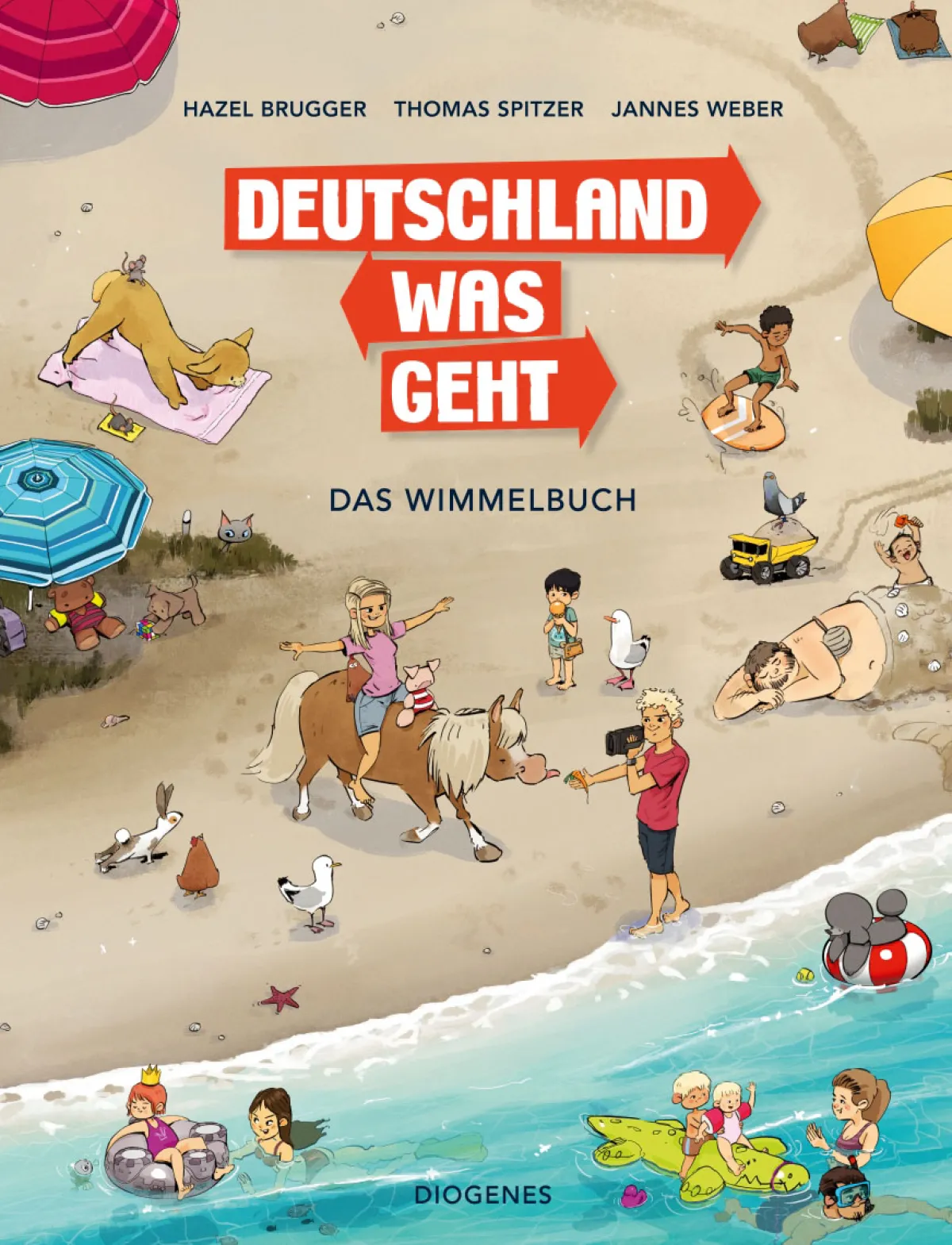 Ob auf der Straußenfarm, im Fitnessstudio, in der Currywurstbude oder am Strand: In diesem Wimmelbuch sind auf jeder Seite unzählige Menschen, Tiere und kleine Geschichten zu entdecken – und mittendrin Hazel Brugger und Thomas Spitzer. Für ihre Serie »Deutschland Was Geht« besuchten die beiden Comedians kuriose Orte und Veranstaltungen im ganzen Land. Kinder werden dieses Wimmelbuch lieben und Fans Schauplätze und Details wiedererkennen. (Ab 2 Jahre)