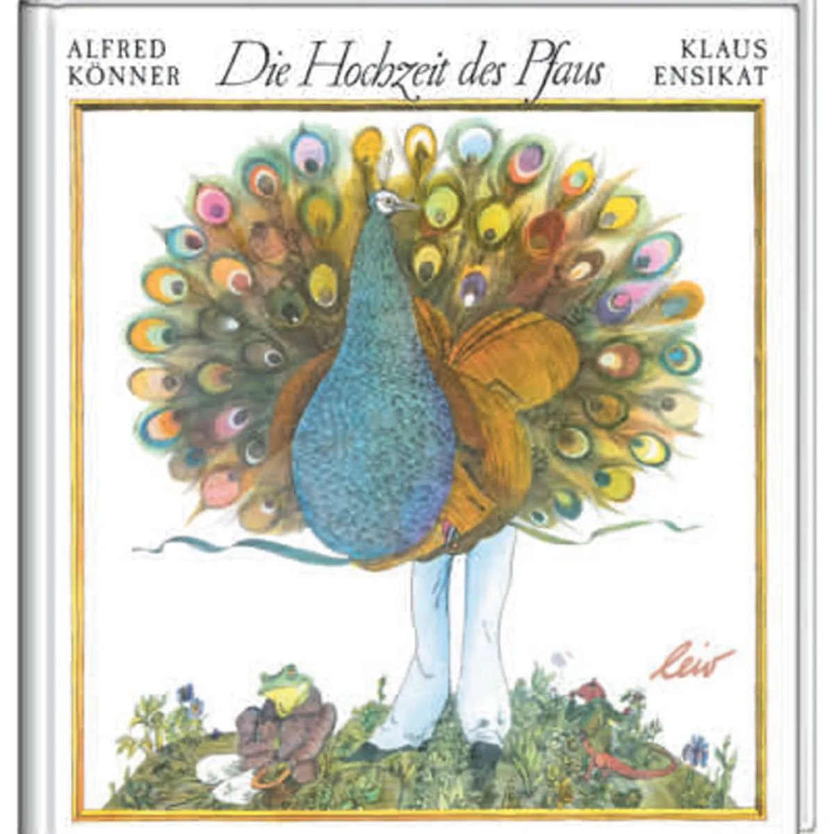 Nach sorbischen Motiven erzählt von Alfred Könner mit Bildern von Klaus Ensikat. Eines Tages will der eitle Pfau heiraten. Er bittet den Fuchs, ihm eine einmalige Hochzeit auszurichten. So geschieht es: Storch, Gans und Schaf krakeelen den Hochzeitsmarsch, die Frösche quaken den Chor und drei Ziegenböcke tanzen Ballett, bis der Tisch bricht. Also lässt der Fuchs auf seinem Schwanz tafeln. Ja, und dann passiert das Malheur, von dem man noch bis morgen sprechen wird. (Ab 4 Jahre)