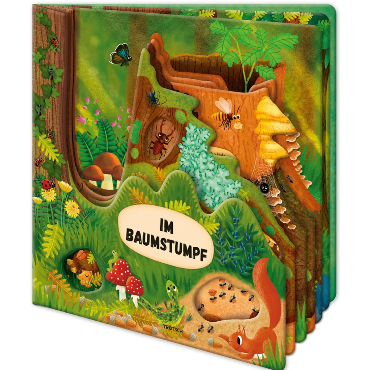 Mit diesem detailreich und liebevoll gestalteten Fensterbuch können Kinder das Leben in einem abgestorbenen Baumstumpf erkunden. Die vorderen Seiten sind in Form gestanzt – so tauchen die kleinen Entdecker mit jeder Seite tiefer ins Innere eines Baumstumpfes ein und können immer neue Tiere aufspüren. Viele kleine Gucklöcher schenken extra Einblicke und mit den kurzen Texten wird kleinen Kindern leicht verständlich wertvolles Naturwissen vermittelt. Ein Sachbuch zum Anschauen, Lesen und Entdecken! (Ab 4 Jahre)