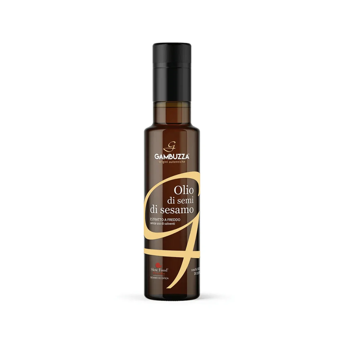 Das Sesamöl von Fratelli Gambuzza wird ausschließlich aus Ispica-Sesam hergestellt. Durch die schonende Kaltpressung nach Methode der Slow-Food-Bewegung, behält das Öl seinen unverwechselbaren Charakter und seine wertvollen Inhaltsstoffe. Das aromatische Ispica-Sesamöl eignet sich hervorragend zum Verfeinern von Gerichten sowie als Basis für Dressings und Saucen. Nutzen Sie das vielseitige Öl sowohl für asiatische Gerichte als auch als geschmackliches Highlight in der europäischen Küche – etwa für Risotto und für besondere Desserts mit Joghurt oder Eiscreme. Auch auf dem morgendlichen Porridge sehr gut! (bio-zert., IT-Bio-018)