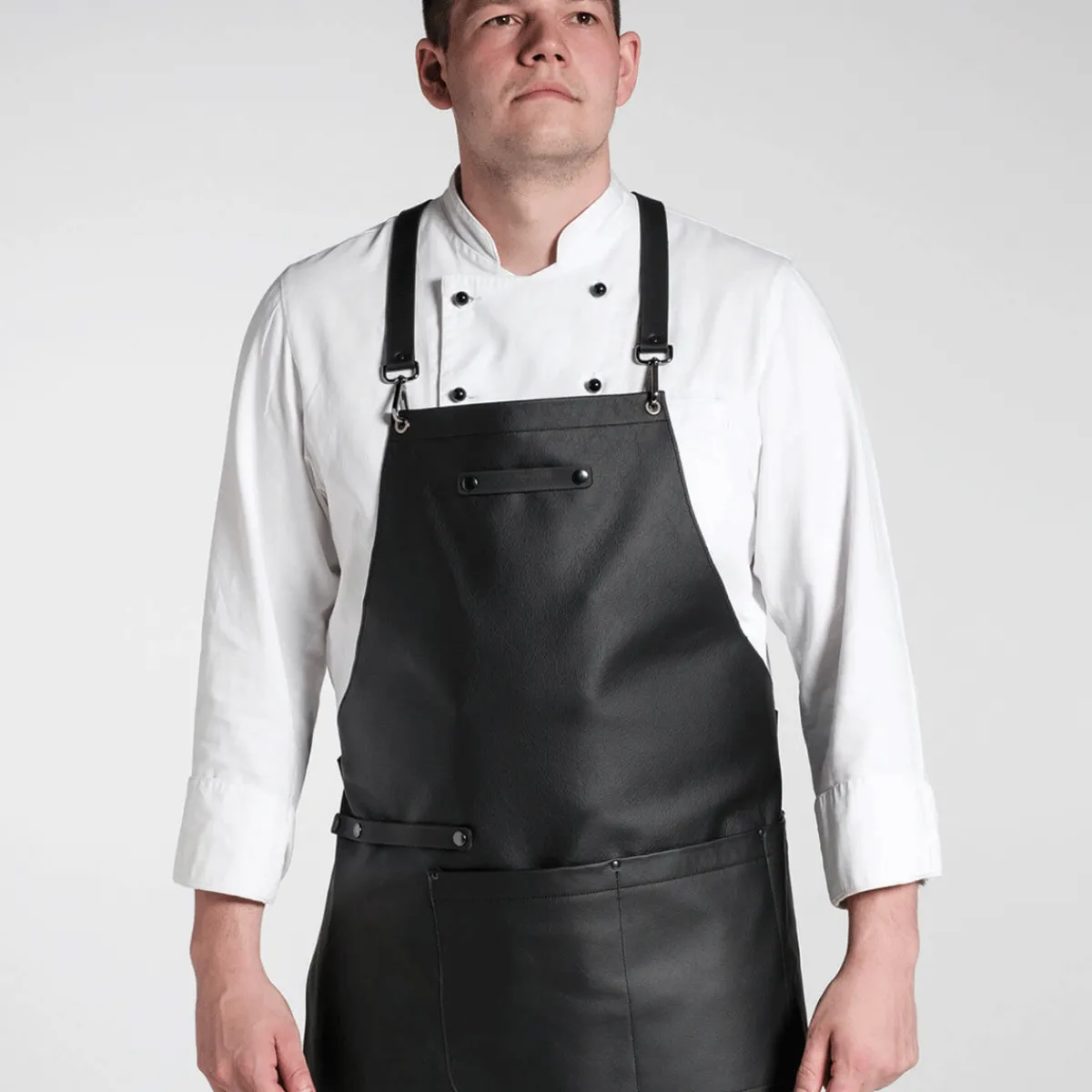 Waschbär Kochschürze aus Rindleder, schwarz.