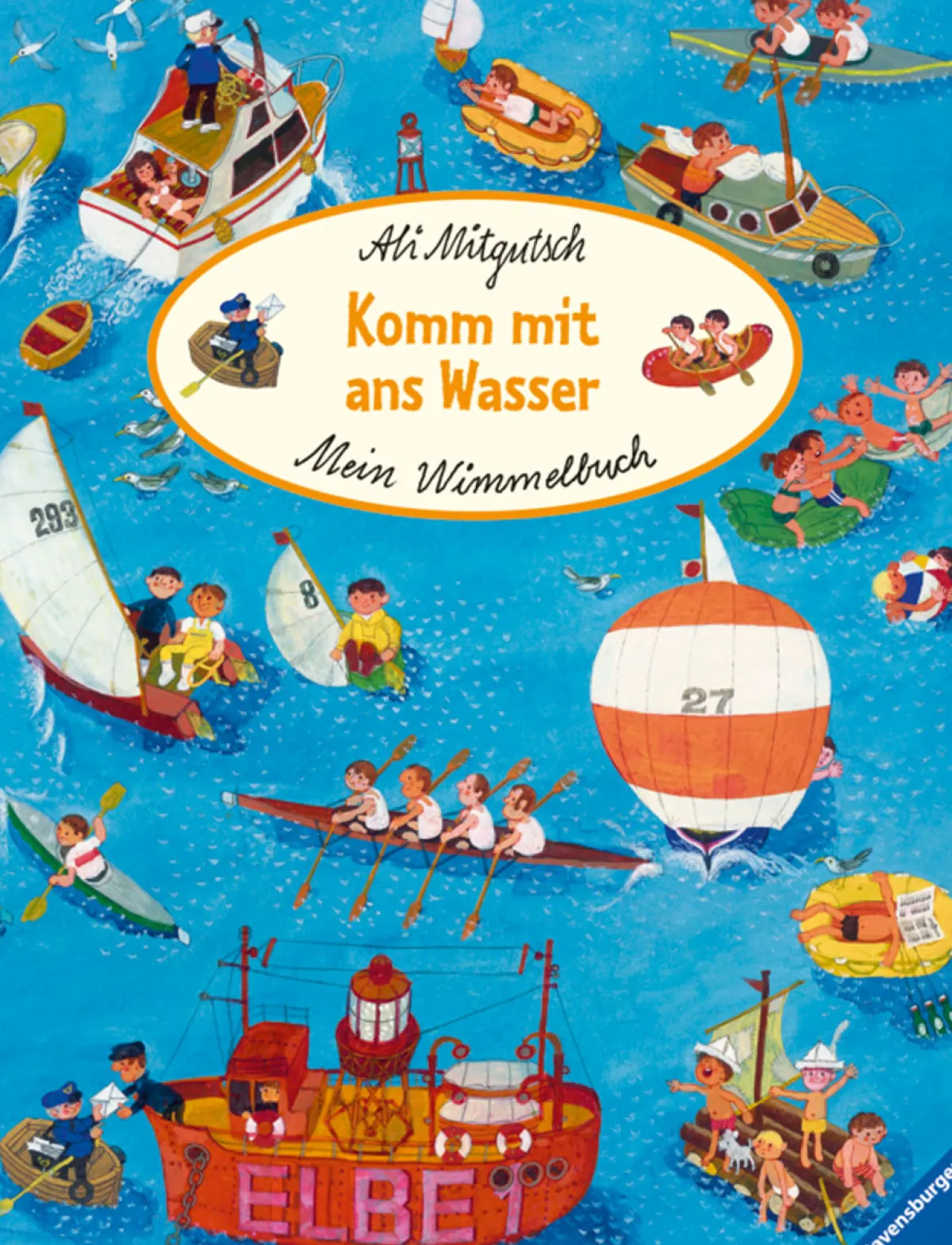 In diesem Wimmelbuch lässt Ali Mitgutsch seine liebenswerten Figuren ganz ohne Worte viele lustige Geschichten erzählen: Wie geht es am Hafen zu, wenn die Fischer auf dem Markt ihren Fang verkaufen, die Netze flicken und Boote reparieren? Wie ist ein Passagierschiff aufgebaut? Auch der bunte Trubel am Strand verführt zum Betrachten und Staunen. Detailgenau und immer mit viel Humor, zeigt Ali Mitgutsch allen kleinen und großen Kindern, was es alles am und im Wasser zu entdecken gibt. Ein Bilderbuchspaß für die ganze Familie, das in keinem Kinderzimmer fehlen darf. (Ab 2 Jahre)