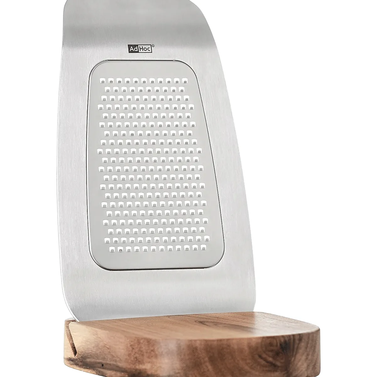 Die hochwertige Multifeinreibe aus Edelstahl eignet sich für Hartkäse, Wurzelgemüse (z. B. Ingwer), Schokolade und vieles mehr. 240 kleine, geätzte, messerscharfe Zähne sorgen für ein besonders schnelles und feines Reibeergebnis. Mit der geschwungenen S-Form wirkt die Reibe sehr elegant und dank des Ständers mit Ablage aus Akazienholz wie ein eigenes Design-Objekt in ihrer Küche.