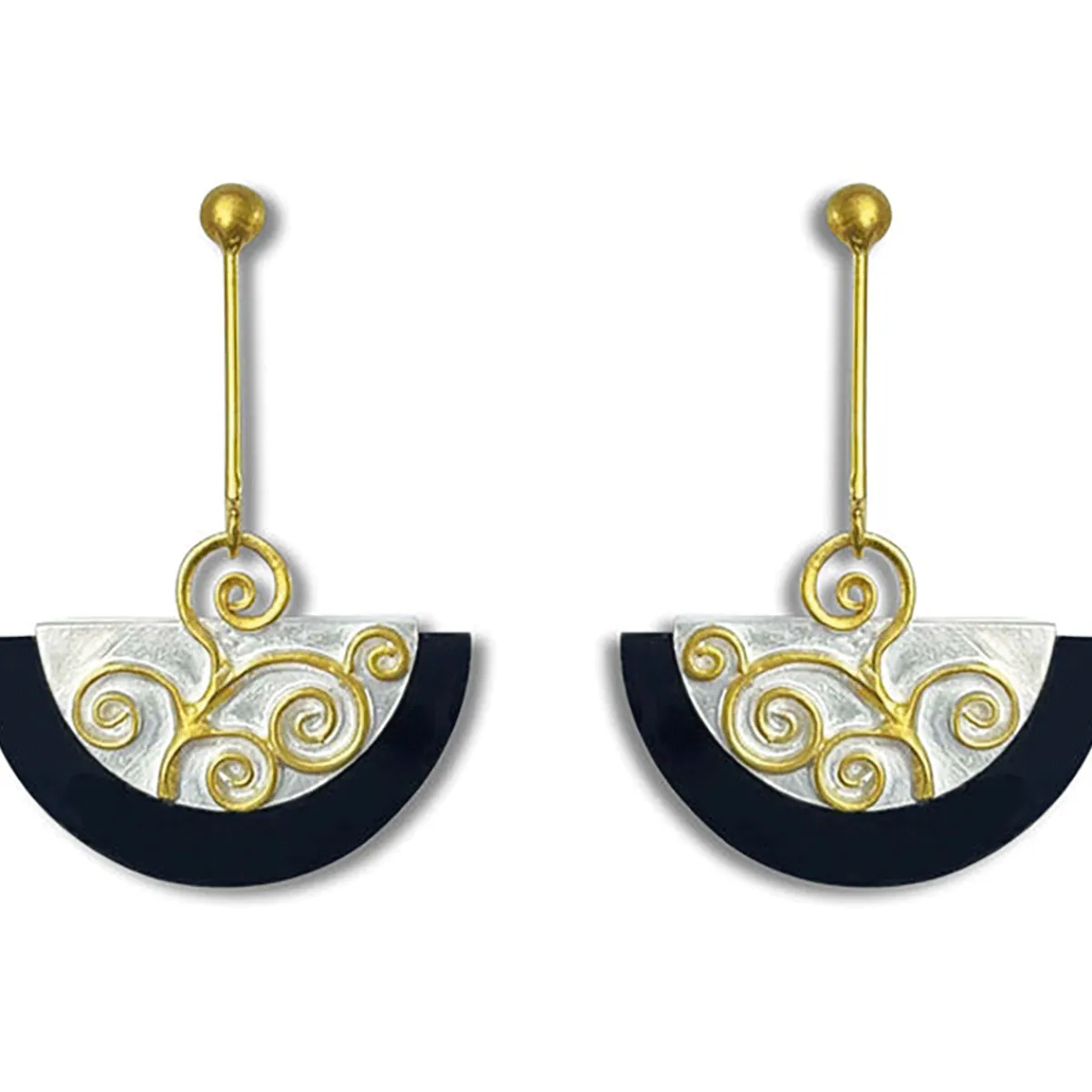 Paula Bolton ist eine britische Schmuckdesignerin, die sich seit langem vor allem vom Impressionismus, Symbolismus, Jugendstil und den Sezessionsbewegungen inspirieren lässt. Kunstversiert und viel auf Reisen war sie natürlich auch in Brüssel und hat das Palais Stoclet besucht. Diese Ohrstecker gehen unverkennbar auf Gustav Klimts »Lebensbaum« zurück, der eines der Motive in dem Fries in dem Palais ist. Bolton sagt dazu: »Ich habe mich für dieses Design von den sich drehenden Zweigen in Klimts ikonischem Lebensbaum inspirieren lassen, der im Stoclet-Fries im Palais Stoclet in Brüssel zu sehen ist.« Ihre Ketten, den Ohrschmuck, Armreife und Broschen, die bei uns zu den Bestsellern gehören, lässt Paula Bolton seit Jahrzehnten von einer Kunsthandwerker-Familie, mit der sie mittlerweile eng befreundet ist, auf der wunderschönen indonesischen Insel Bali von Hand anfertigen.