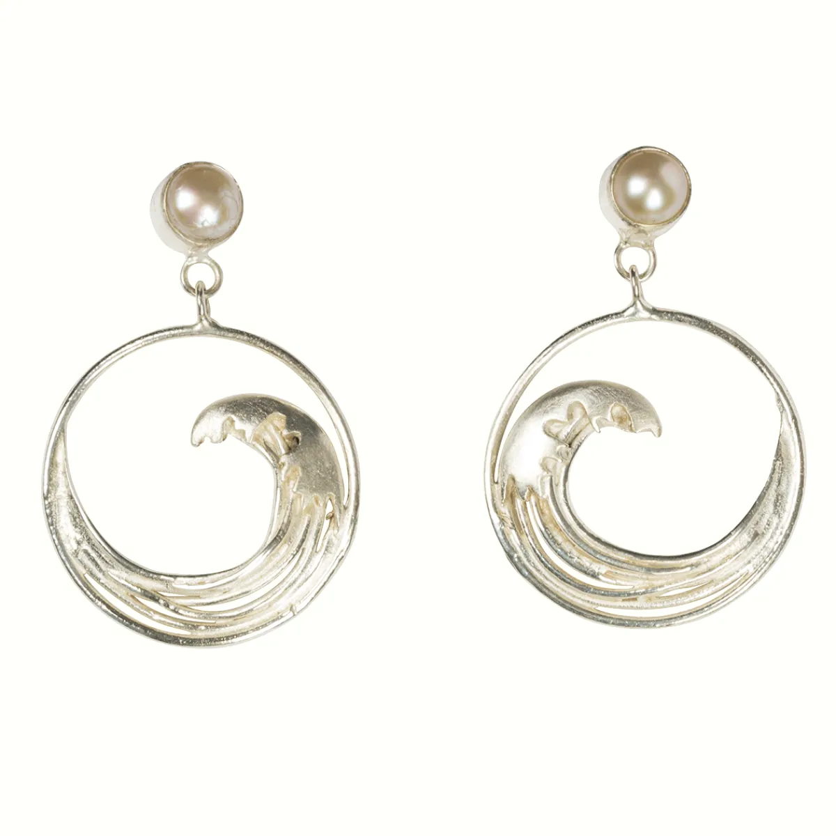 Diese ungewöhnlichen, silbernen Ohrstecker zeigen in formidabler Weise den Ausschnitt eines weltberühmten Holzschnitts. Erkennen Sie die »Welle« von Katsushika Hokusai (1760 bis 1849)? Hokusai war einer der großen Meister des japanischen Holzschnitts. Er wurde im Westen erstmalig durch seinen gewaltigen Einfluss auf die Impressionisten, z.B. Gauguin, Van Gogh und Toulouse-Lautrec, bekannt. Auch die Designerin Paula Bolton liebt die Holzschnitte des großen japanischen Meisters und hat deshalb ein Schmuck-Ensemble entworfen, das aus diesem Paar Ohrstecker, einer Kette mit Anhänger sowie einem Armband besteht. Bolton lebt und arbeitet in einem Cottage aus dem 16. Jahrhundert in einem idyllischen Dorf im ländlichen Kent. Sie ist verheiratet und hat zwei Kinder und sechs Enkelkinder. Für ihre Entwürfe lässt sie sich immer wieder aufs Neue durch ihre ausgedehnten Reisen, durch Besuche bei Kunstausstellungen und der Natur um sie herum inspirieren. Sie selbst besitzt einen wundervollen, ummauerten Garten. Ihr Urgroßvater war ebenfalls ein abenteuerlustiger Unternehmer, und ihr Vater und Großvater wurden beide in Japan geboren. Die Vorfahren ihrer Mutter waren holländische Kaufleute, die im 18. Jahrhundert in den Osten segelten. Paula Bolton lernte auf Reisen auch die Hersteller für ihre Schmuckstücke kennen, denn diese werden auf Bali nach ihren Vorgaben hergestellt.