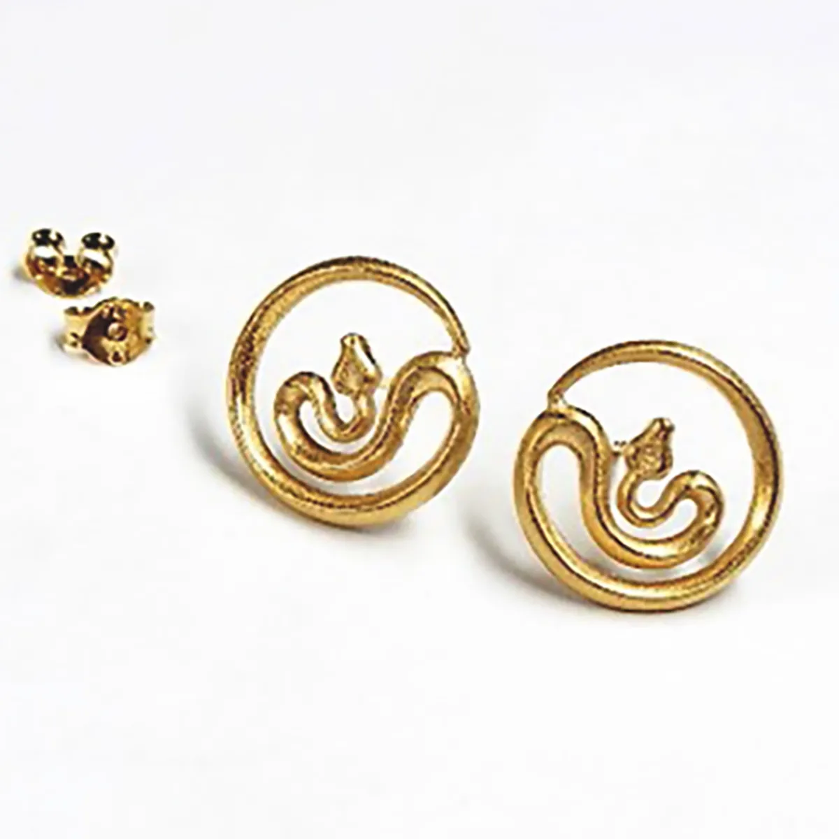 Diese goldplattierten Ohrstecker aus 750er Sterlingsilber bestehen aus zwei im Kreis liegenden Schlangen und tragen den hübschen Titel »Last Paradise«. Das außergewöhnliche Ohrstecker-Paar hat der Pforzheimer Schmuckdesigner Christian Guthmann entworfen und von seinem kleinen, professionellen Team in der Pforzheimer Werkstatt in Kleinstserie herstellen lassen. Der heutige Firmenchef der bereits 1906 gegründeten Manufaktur legt großen Wert auf Nachhaltigkeit: Christian Guthmann fertigt seinen Schmuck ausschließlich in Pforzheim an und bezieht z.B. die Edelmetalle als recyceltes Material von der »Allgemeinen Gold- und Silberscheideanstalt AG Agosi Pforzheim«. Sehen Sie sich gerne auch die zu diesen Schlangen-Ohrringen passende Halskette an!