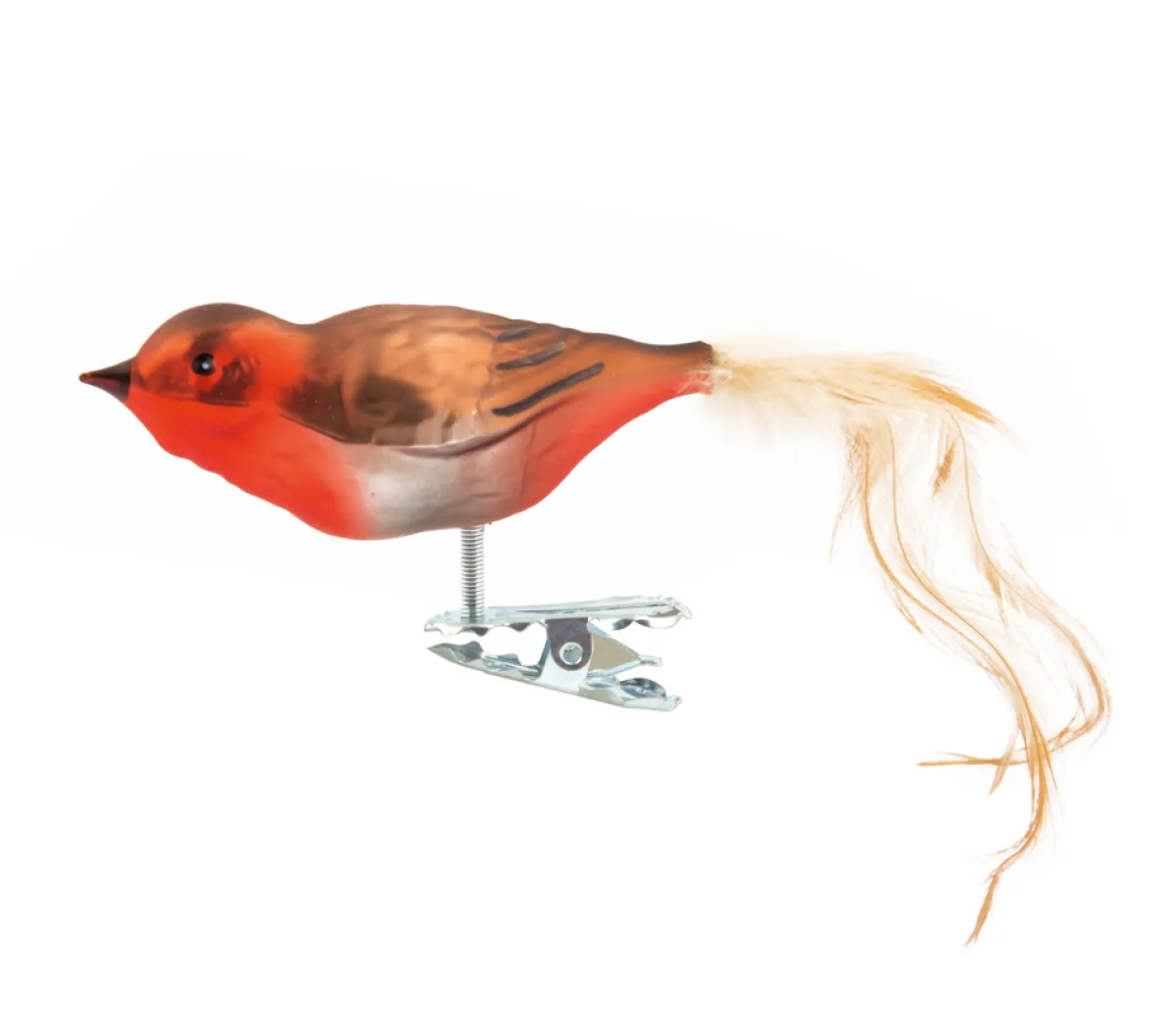 Dieses zauberhafte, fragile Rotkehlchen aus Glas haben wir aus der Farbglashütte Lauscha. Dort in Thüringen wird seit vielen Generationen Glaskunst hergestellt. Vor allem in der Weihnachtszeit sind die Glaskugeln und mundgeblasenen Glasvögeln eine beliebte Dekoration für den Tannenbaum. Das Rotkehlchen aus Glas beispielsweise können Sie dank eines Clips ganz einfach an einen Zweig klemmen. Die Legende von der Entstehung der aus Glas geblasenen Weihnachtskugeln besagt, dass im 19. Jahrhundert ein armer Mann kein Geld hatte sich die Lebensmittel für den Baum zu kaufen. So blies er aus Glas Kugeln und hing sie an seinen Baum. Wie schon damals wird auch heute in der traditionsbewussten Lauschaer Glashütte Christbaumschmuck produziert und liebevoll handbemalt. Bitte beachten Sie, dass jedes Teil einzeln mundgeblasen und handbemalt wird. So können immer mal kleine Form- und Farbabweichungen entstehen. Diese aber sind eben auch deutliche Merkmale für handgemachtes Glas und machen jeden Glasvogel zu einem liebevoll erstellten Unikat. Im Shop finden Sie noch viele weitere Vögel. Schauen Sie sich deshalb gerne weiter um bei uns.