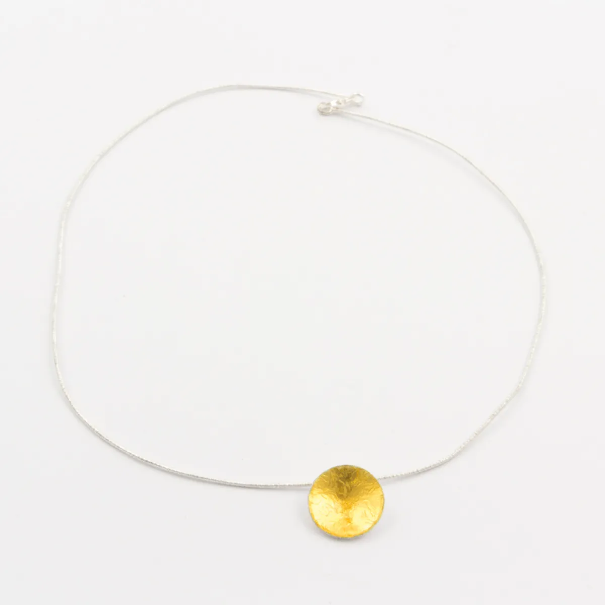 Ø 1,5 cm, Silbergarn-Kette 42 cm, 999er Blattgold, Fondant-Emaille (echtes Feuer-Emaille).