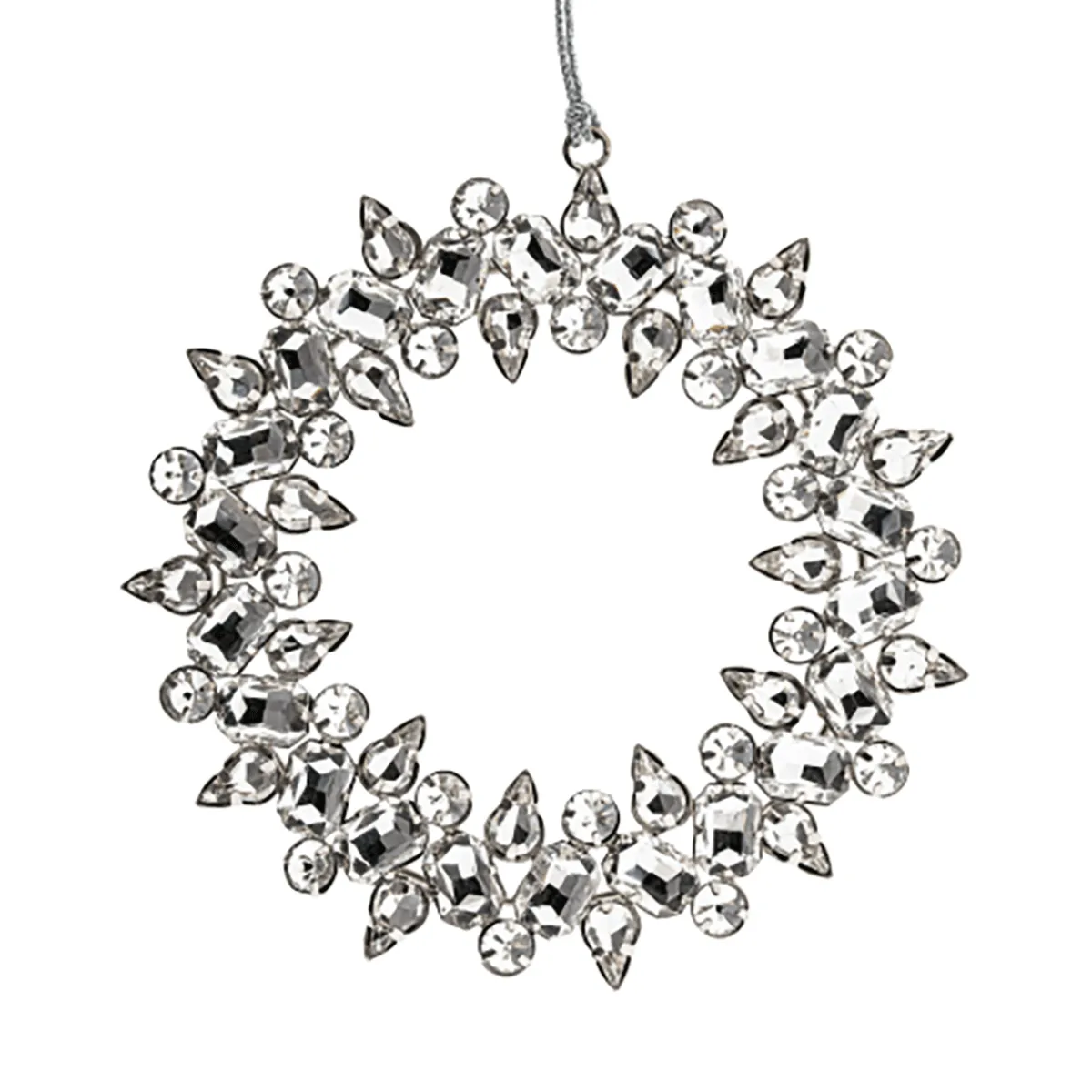 Glänzender Kreis zur Erinnerung an die Unendlichkeit. Facettierte Glassteine, Größe: ca. Ø 13,2 cm, Schnur: ca. L. 16 cm.