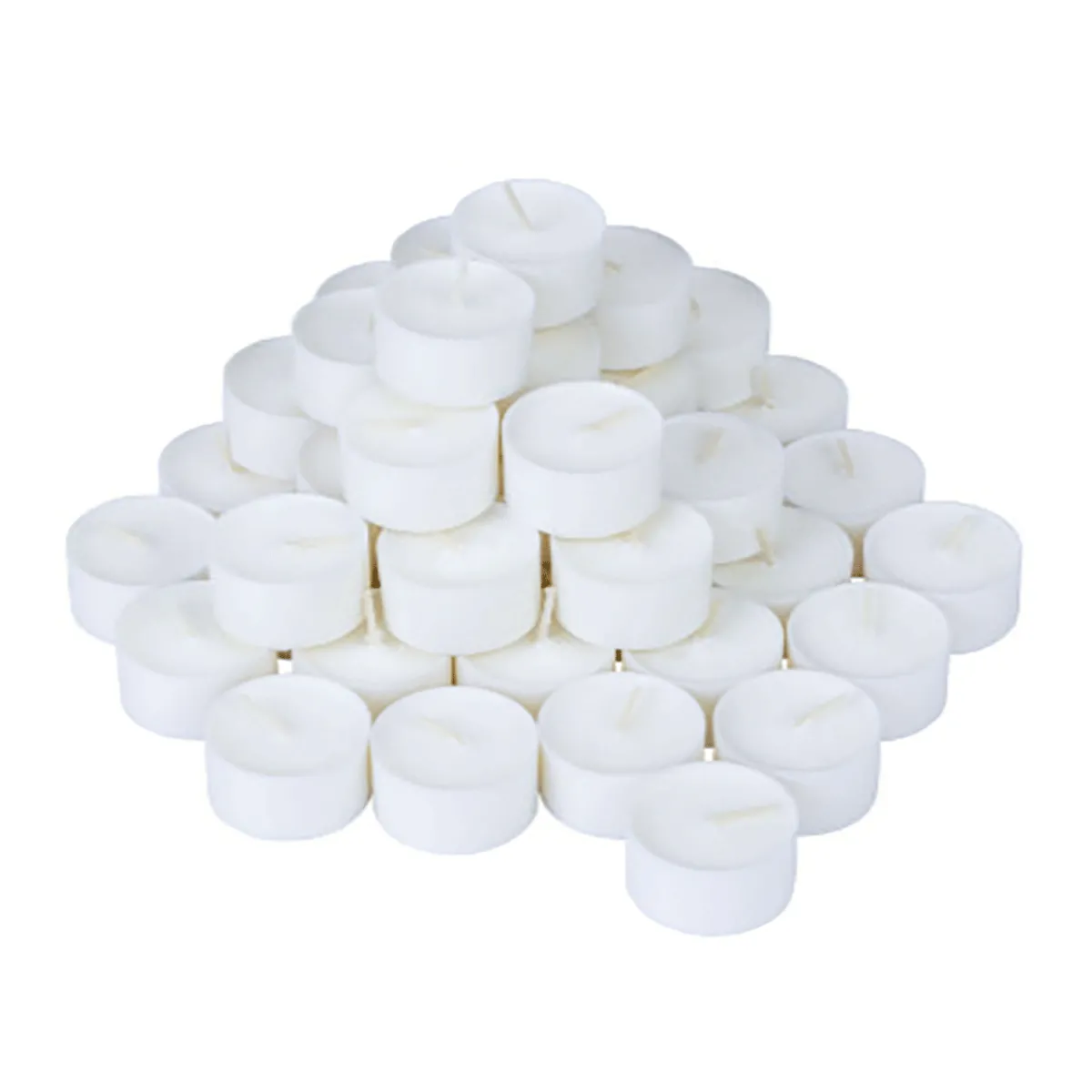 100 Stück à Ø 3,9 cm, 2 cm, Wachs auf Bio-Raps-Basis, kompostierbare Hüllen aus Bio-Kunststoff, hergestellt in Litauen.