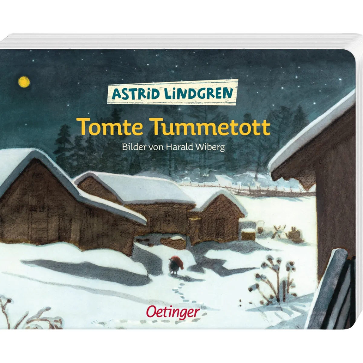 Wenn die Sterne am Himmel funkeln und der Schnee weiß leuchtet, schleicht auf leisen Sohlen Tomte Tummetott, der Wichtel mit der roten Mütze, im Mondlicht umher und hinterlässt winzige Fußstapfen. Er bewacht die schlafenden Menschen und die Tiere auf dem Hof und erzählt ihnen vom Frühling, der bald kommen wird …