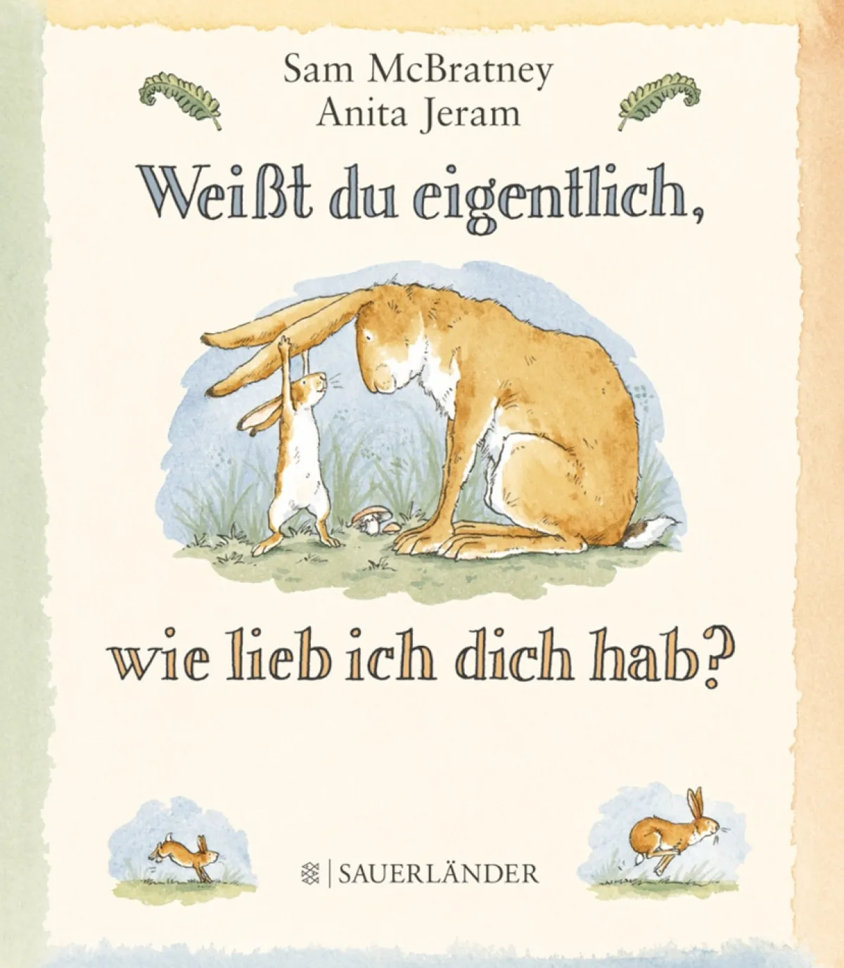 Der kleine Hase hat den großen Hasen lieb. Wie lieb? Sooo lieb hat er ihn und breitet die Ärmchen aus. Aber die Arme des großen Hasen reichen weiter. Wie lieb man sich überhaupt haben kann, das zeigt dieses bezaubernde Buch. (Ab 3 Jahre)