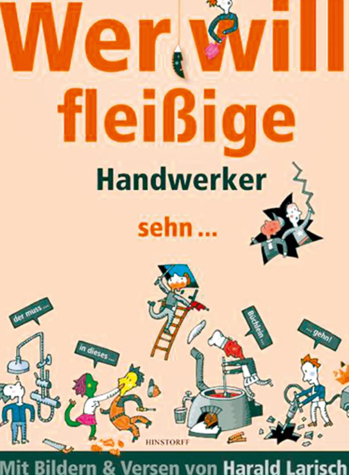 … der muss in dieses Büchlein gehn! Dieses Wimmelbuch voller Verse, zum Lachen und Entdecken, ist lehrreich für Klein und Groß. Der Autor und Illustrator stellt die Berufe der Handwerker vor: Glaser, Schornsteinfeger, Elektroniker, Brunnenbauer, Tischler u.a. Jedes Wimmelbild zeigt mit zahlreichen kleinen Details, auf welche Weise etwas entsteht. Kurztexte erläutern die Berufe, damit die Großen schnell antworten können, wenn die Kleinen mal allzu nachdrücklich fragen sollten. In an Comics erinnernden Sprechblasen kommentieren die Figuren ihr Tun: Da ist beim Schreiner vom ungehobelten Gesellen die Rede, werden die Folgen von häufigem Bohren (nicht nur in der Nase) erläutert, erfährt man, dass auch ein Tischler mal auf den Holzweg geraten kann. Oder man bekommt mitgeteilt, warum der Schmied mehrere Eisen im Feuer haben sollte. Ab 5 Jahren.
