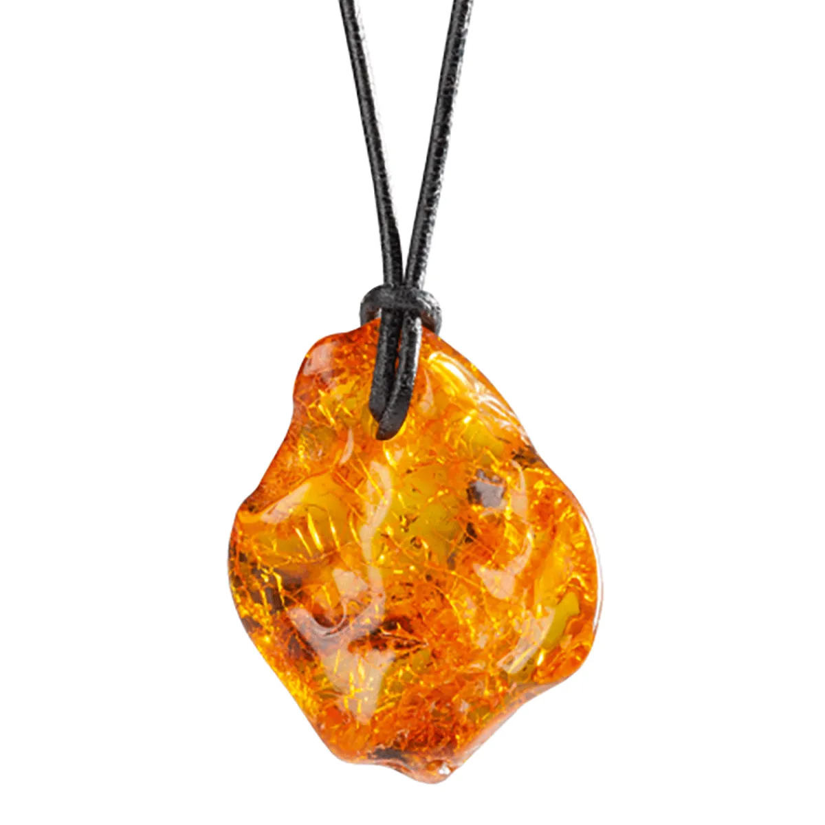 Bernstein wird auch Sonnenstein genannt, weil er geladene Sonnenenergie in sich trägt. Diese hat die einmalige Fähigkeit, den ganzen Körper zu durchleuchten und zu reinigen. Er gilt auch als Stein der Lebensfreude und Fröhlichkeit und wirkt beschützend. L. ca. 3,5 x B. ca. 3 cm. Inklusive Lederband. Jedes Stück ist ein Unikat.