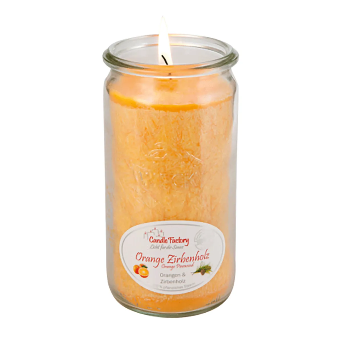 Die Würze von Zirbenholz und die Frische von Orangen – in dieser Duftkerze wirken die Essenzen gemeinsam und erschaffen ein außergewöhnlich aromatisches Dufterlebnis. Das Aroma lässt sich schon erschnuppern, wenn man nur den Deckel öffnet. Bei brennender Kerze aber erwachen alle Sinne.