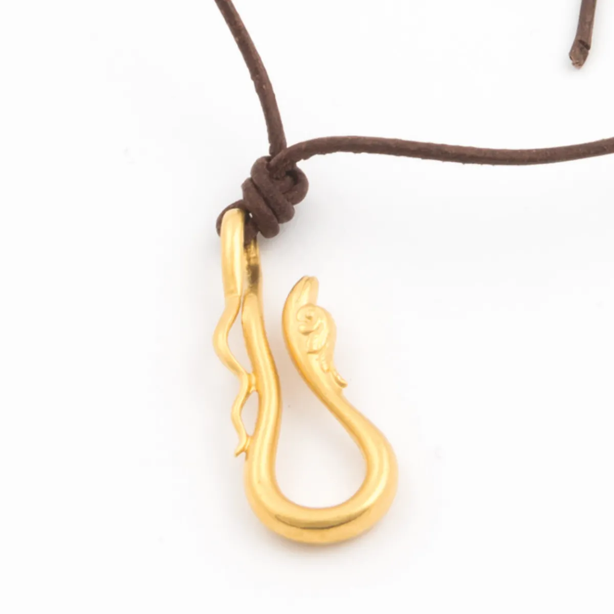 Diese ungewöhnliche Goldkette mit Schlange Anhänger hat ein ganz besonderes Vorbild. Wenn Sie sich die gebogene Schlange aus vergoldetem Messing einmal genauer auf den Fotos ansehen, können Sie folgendes erkennen: Die Schlange ist wie ein Clips geformt, den man sich anstecken könnte. Und das hat eine Bewandtnis: Die Pforzheimer Schmuckmanufaktur »Martin Guthmann« hat für das Design der Kette mit Schlange Anhänger den Clip einer Taschenuhr zum Vorbild genommen. Das Original befindet sich im Schmuckmuseum Pforzheim. Mitte des 19. Jahrhunderts waren Taschenuhren häufig mit einer Art Sicherheitsclip versehen, damit der Träger die Uhr und die Uhrkette in der Westentasche fixieren konnte. Die Schlange konnte so zum Beispiel durch ein Knopfloch gesteckt werden und die Uhrenkette war gegen Herunterfallen oder Verlust gesichert. Eine schöne Idee, nicht wahr? Jetzt können Sie die nach antikem Vorbild handgemachte Kette aus vergoldetem Messing mit dem Lederband umbinden. Da das Band offen ist, können Sie den Knoten an der Stelle machen, die Ihnen am besten bei der Länge der Kette zusagt. Das Familienunternehmen »Martin Guthmann« lässt sich bei seinen Kreationen häufig von Originalen inspirieren. Den Schmuckdesignern in Pforzheim können dafür alte Gärten und Parkanlagen dienen ebenso wie Kunst und Stilrichtungen des 19. und frühen 20. Jahrhunderts: Romantik, Klassizismus, Orientalismus, Impressionismus, Belle Époque und Jugendstil bis hin zum Bauhaus.