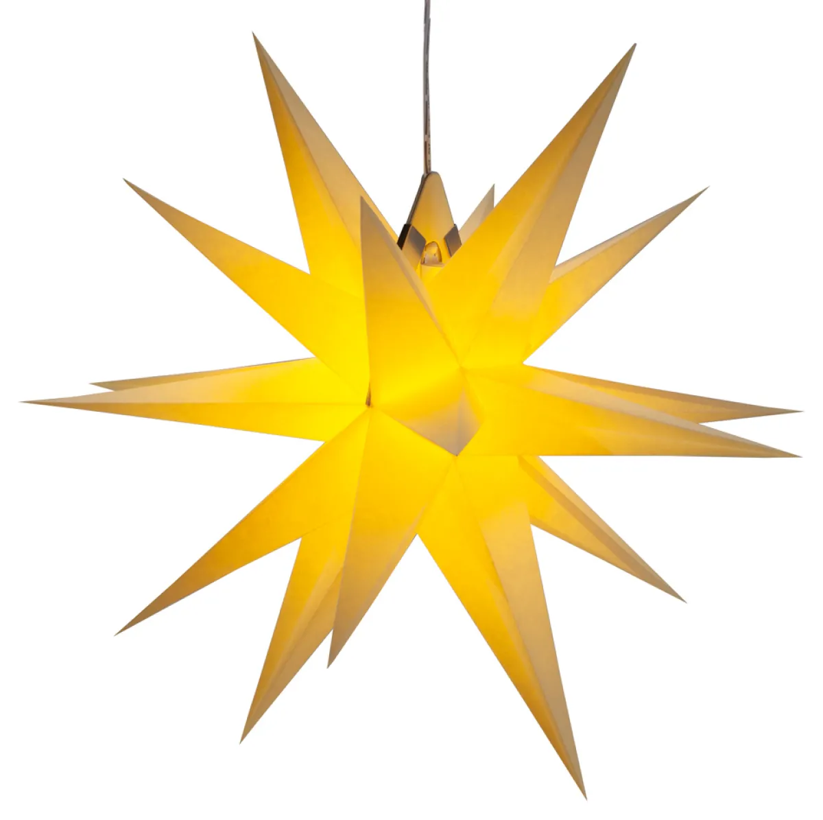 Diese handgefertigten, kleinen Annaberger Faltsterne – hier in Hellgelb – können Sie wunderbar in der Vorweihnachtszeit aufhängen und damit Ihre Wohnung oder das Haus stimmungsvoll dekorieren. Sie benötigen ein Band oder einen Faden und können den Stern dann aufhängen, wo Sie möchten. Sie klappen den Stern auf und können ihn dann mit den zwei bereits an der Pappe montierten Metallklammern zusammenstecken – so entsteht ein »Loch«, durch das Sie ein Band ziehen können oder ein Kabel, denn: Wenn Sie zusätzlich zum Stern auch die entsprechende Beleuchtung bestellen, finden Sie an dem Kabel einen Extra-Aufhänger für den Stern vor. Mit Beleuchtung werden diese hochwertigen, aus Buchbindepapier hergestellten Sterne noch schöner. Sie können sich deshalb die LED-Leuchte inkl. 3,5 Meter langem Netzkabel gesondert bestellen unter der Versandnummer 1234870. Sie können den Stern übrigens auch sehr hübsch aufstellen statt ihn aufzuhängen. Wir haben diese Sterne von der Buchbinderei Kraft aus Annaberg-Buchholz, deshalb auch der Name »Annaberger Faltstern«. Annaberg-Buchholz ist eine große Kreisstadt im sächsischen Erzgebirge. Der Handwerksbetrieb wurde bereits im Jahre 1867 gegründet. Das Unternehmen mit Tradition wird nunmehr in der fünften Generation von der Familie Kraft geführt. Sie pflegt das schöne Buchbindehandwerk in ihrer ganzen Vielfalt.