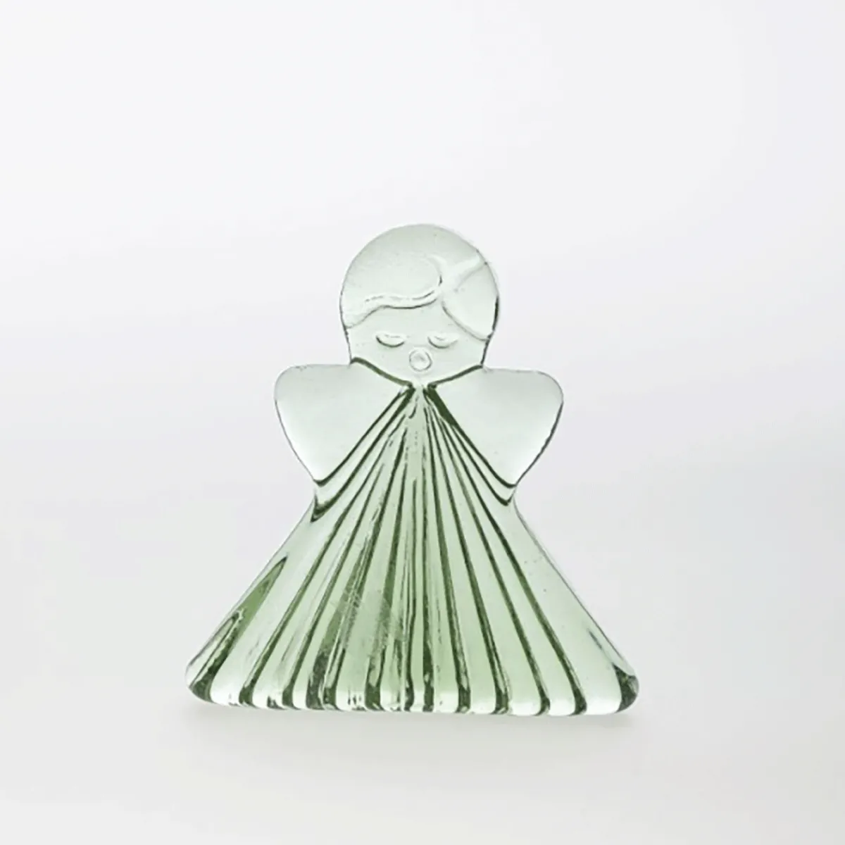 Dieser kleine Engel aus Waldglas ist ein Begleiter für jeden Tag. Sie können ihn – oder mehrere Engel – auf einer Fensterbank platzieren. Oder Sie stellen den Engel, der vielen Menschen als Beschützer gilt, in ein Bücherregal, auf den Schreibtisch, den Esstisch. Das schöne Waldglas, das sich durch seinen grünlichen Schimmer auszeichnet, besteht aus Pottasche-Glas. Die darin enthaltenen Eisenoxide sorgen für das Grün im Glas. Diese Engelsfigur im Faltenrock ist ein handgearbeitetes Figürchen, das aus der Farbglashütte Lauscha stammt. Dort wird um die 1200 Grad heißes Glas mit Hilfe einer Eisenkelle aus dem Hüttenofen entnommen und in die Form aus Eisen gegossen. Nach dem Abkühlen werden die einzelnen Figuren vorsichtig aus ihren Gussformen gehoben. Da es bei all diesen Fertigungsschritten nie unter 100 % gleichen Bedingungen gearbeitet werden kann, wundern Sie sich nicht, dass jeder Engel ein wenig anders aussieht. Mal werden hier kleine Luftbläschen eingeschlossen, mal entstehen dort feine Schlieren. Das Schönste an handgefertigten Produkten ist ja ihre Einzigartigkeit. Übrigens: Zu diesem kleinen Engel finden Sie im Shop auch einen größeren Engel. Zusammen sehen sie besonders hübsch aus. Schauen Sie sich als gerne einmal alle Glasprodukte aus Lauscha hier im Shop an.