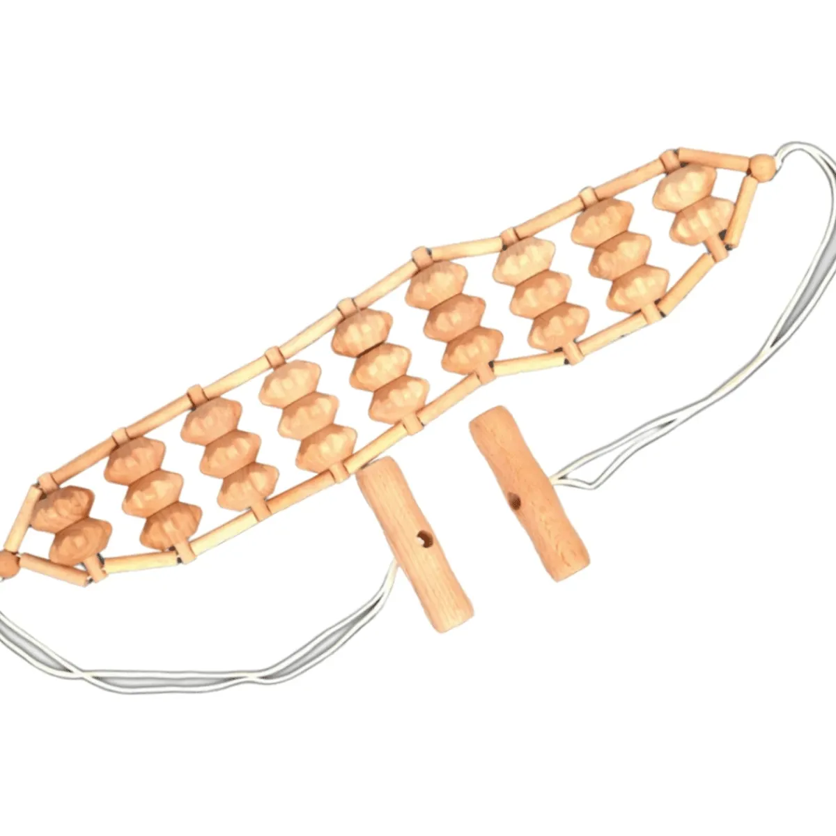 Mit diesem Massageband können Sie bequem den eigenen Rücken massieren. Über die beiden Griffe können die Holzrollen in fast jeder gewünschten Position und Intensität hinter dem eigenen Rücken entlang geführt werden. Durch diese Massage soll eine Entspannung der Muskulatur und eine Förderung der Durchblutung herbeigeführt werden. Dieser formschöne Massageartikel wurde aus einheimischem Buchenholz hergestellt. Buche ist als Hartholz besonders langlebig und robust. Dieser Artikel wird geölt ausgeliefert. Vermeiden Sie daher bitte den Kontakt mit empfindlichen Gegenständen.