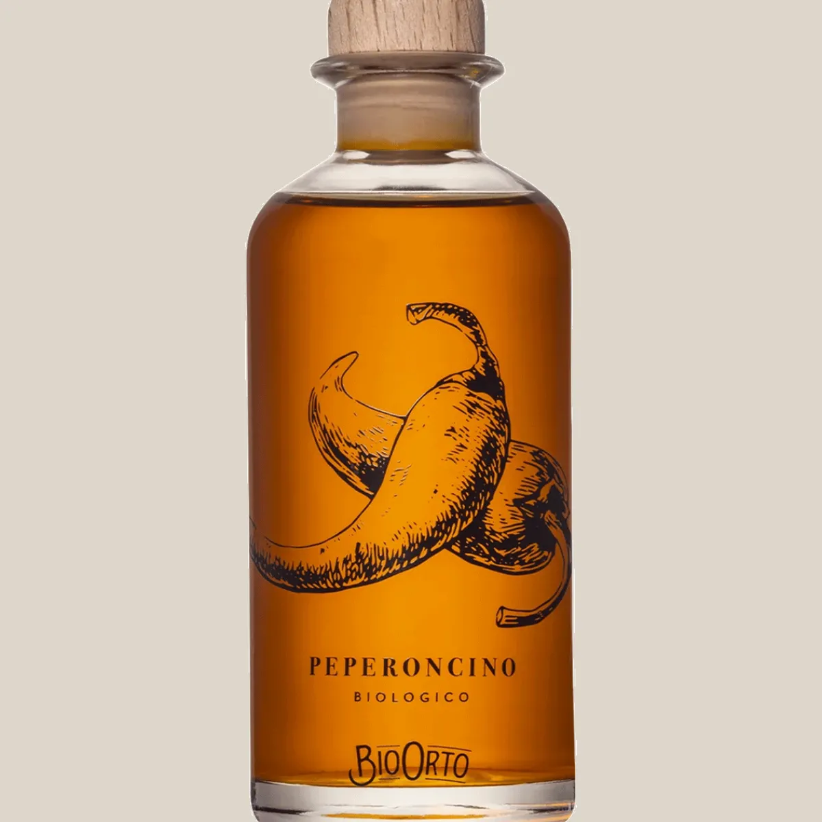 Das Aromatisieren von Olivenöl hat in Italien eine lange Tradition. Die in Apulien von Bio Orto produzierten hochwertigen Olivenöle stechen dabei besonders hervor: Alle Bestandteile stammen aus einer Hand, werden biologisch im hauseigenen »Garten« (»orto« bedeutet Garten) angebaut, geerntet und direkt verarbeitet. Diese pikante Komposition aus frischen Chilis und sorgfältig hergestelltem Olivenöl lässt die Aromenvielfalt der »Peperoncini« optimal zur Geltung kommen. Genießen Sie diese Delikatesse in höchster Bio-Qualität zum Verfeinern von Bruschetta, mariniertem Fleisch oder Fisch, Gemüsesuppen oder um Ihrer Lieblingspizza eine kräftigere Note zu verleihen. (bio-zert. IT BIO 013 BZ-01816-B)