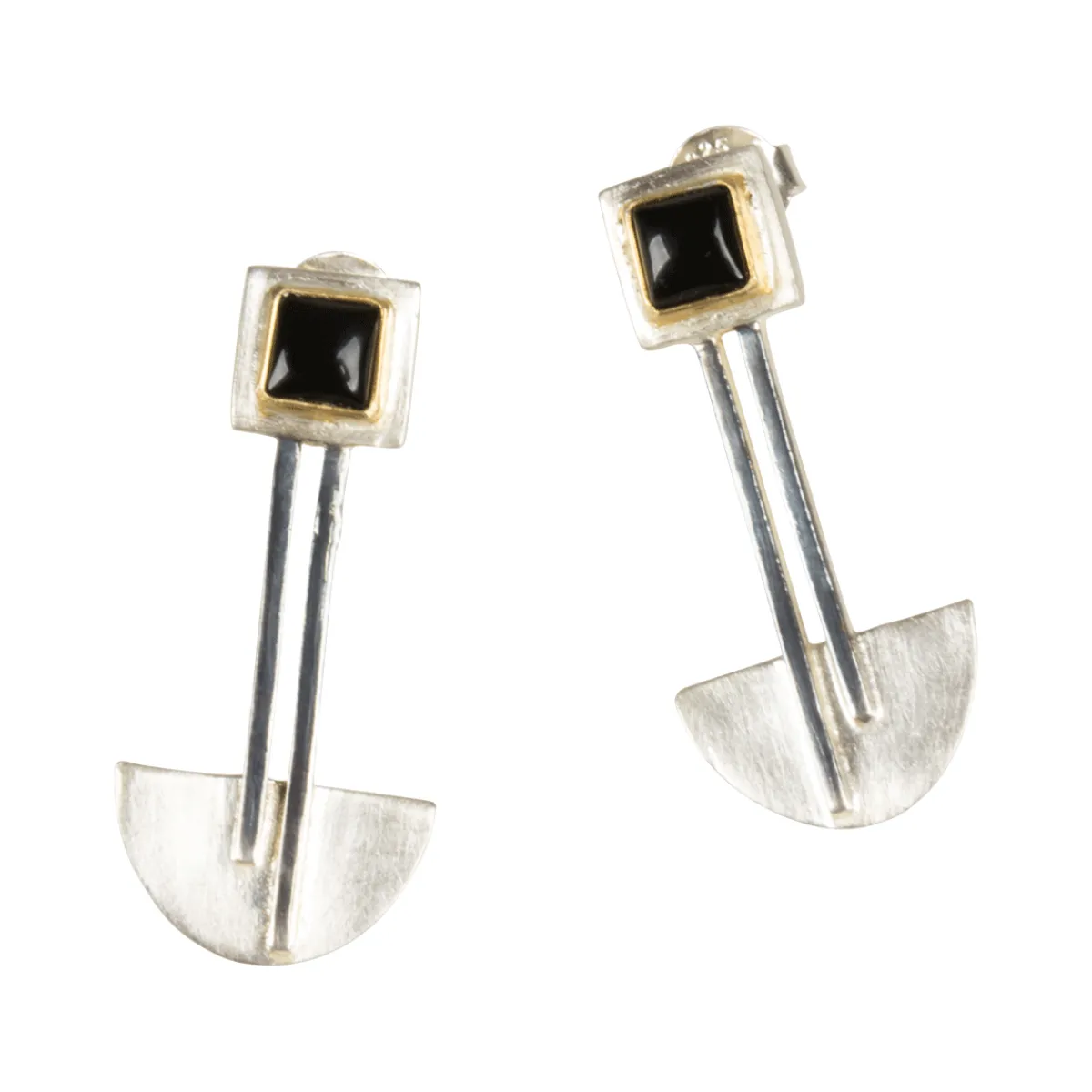 Das Paar Ohrringe »Bauhaus« – aus Silber und mit einem schwarzen Onyx-Stein – erinnert in ihrer Form an die Schmuckstücke der Bauhaus-Künstler. Die Kunstschule aus Weimar feiert ja 2019 ihr 100. Bestehen. Wir haben die filigranen Ohrringe (mit Stecker) von Paula Bolton. Die Schmuckdesignerin lebt in einem Cottage aus dem 16. Jahrhundert in einem idyllischen Dorf im ländlichen Kent. Sie ist verheiratet und hat zwei Kinder und sechs Enkel. Für ihre Entwürfe lässt sie sich immer wieder aufs Neue durch ihre ausgedehnten Reisen, durch Besuche bei Kunstausstellungen und der Natur um sie herum inspirieren. Sie selbst besitzt einen wundervollen, ummauerten Garten. Ihr Urgroßvater war ebenfalls ein abenteuerlustiger Unternehmer, und ihr Vater und Großvater wurden beide in Japan geboren. Die Vorfahren ihrer Mutter waren holländische Kaufleute, die im 18. Jahrhundert in den Osten segelten. Paula Bolton lernte auf Reisen auch die Hersteller für ihre Schmuckstücke kennen, denn diese werden auf Bali nach ihren Vorgaben hergestellt. Die balinesischen Familien, die Boltons Schmuck liebevoll anfertigen, sind zu ihren Freunden geworden und so kooperieren zwei sehr unterschiedliche Kulturen in fast perfekter Harmonie! Die Handwerker auf Bali haben ihre Fähigkeiten von Generation zu Generation weitergegeben und durch Paula Bolton wird ihre Kunst weiterhin geschätzt.