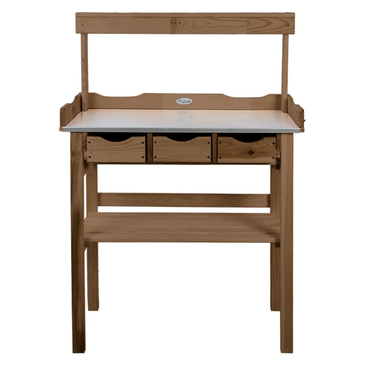 Mit diesem praktischen Pflanztisch haben Sie alles im Griff. Der Tisch hat drei Schubladen, eine Zinkplatte, ein Ablagefach und einen Aufsatz.