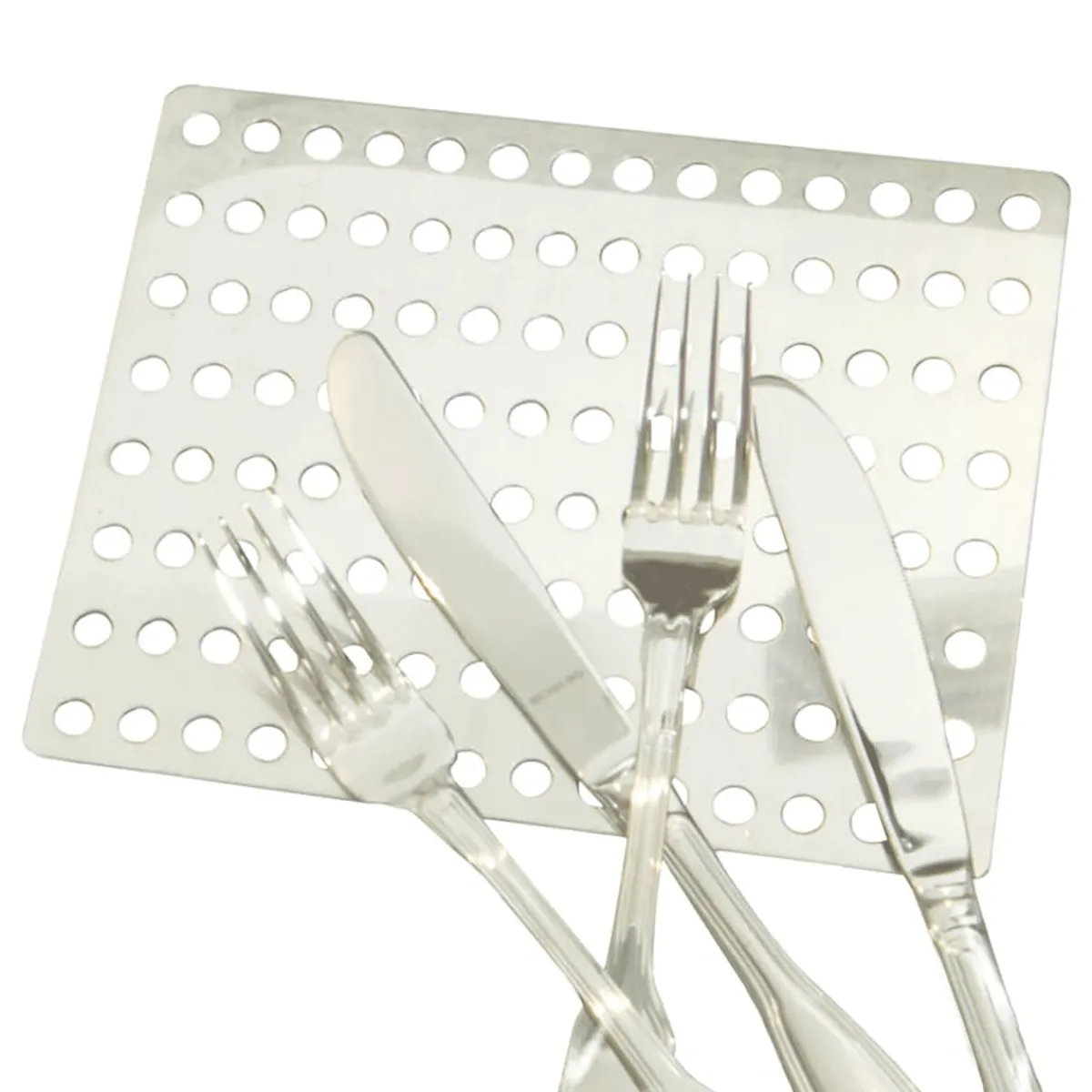 Silberbesteck ist wirklich schön, und auch wenn wir es meist nur zu festlichen Anlässen hervorholen, glänzen soll es! Aber genau das ist das Problem: Je weniger die Gegenstände aus Silber in Gebrauch sind, umso eher laufen sie an. Das menschliche Hautfett verhindert den Anlaufprozess, aber wenn wir Besteck, Schmuck, Kerzenständer und andere Gegenstände aus Silber selten benutzen, wird das Material dunkel und unansehnlich. Diese Platte zum Silberputzen sorgt für Abhilfe und das mühsame Polieren mit dem Putztuch hat ein Ende! Legen Sie die Lochplatte ins Spülbecken oder in eine Schüssel, geben etwas Salz und natürlich Wasser hinzu. Das angelaufene Silber wird in der Lösung wie von Zauberhand gereinigt. Spülen Sie das Geschirr oder den Schmuck danach mit klarem Wasser ab und trocknen die Gegenstände mit einem Geschirrtuch. Die Alu-Platte kommt völlig ohne Chemie aus und trägt auch nichts von der wertvollen Oberfläche ab. Ideal zur Reinigung von Silber, Gold, Kupfer, Edelstahl und versilberten Dingen.