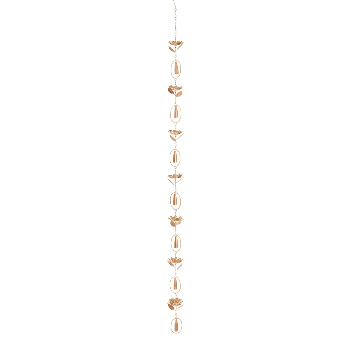 Auf goldglänzende Blumen und Glöckchen treffen hier die Regentropfen und erzeugen einen perlenden Klang. Lasse die segenspendende Energie des Wassers durch deine Aura und vielleicht auch über deine Hände rieseln. So kannst du Regentage im Sommer verzaubern und zu einem Erlebnis für die Sinne machen. Eisen, ca. L. 188 cm x B. 10 cm. Gewicht: ca. 600 g.