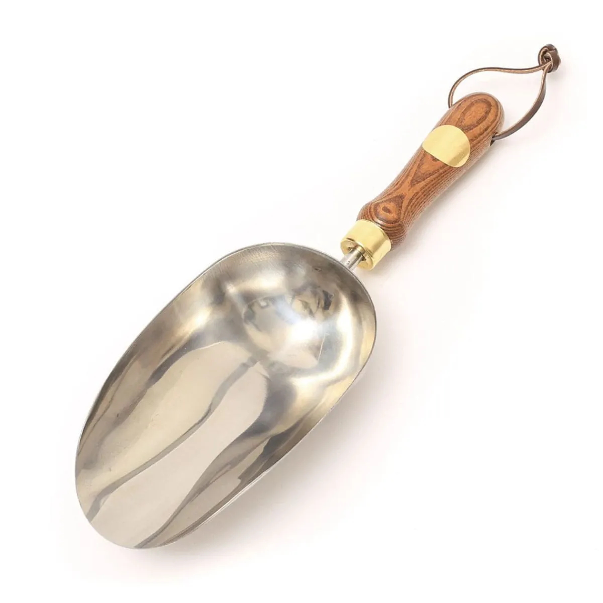 Mit der Kompostschaufel aus Edelstahl schichten Sie kleinere wie größere Mengen an Kompost oder Pflanzenerde in Töpfe oder Beete um. Die tiefe Form der Kelle sorgt dafür, dass rundherum alles schön sauber bleibt. Zudem verfügt sie über ein besonders großes Fassungsvermögen, sodass Sie mit einer Ladung wesentlich mehr transportieren als mit herkömmlichen Handschaufeln.
