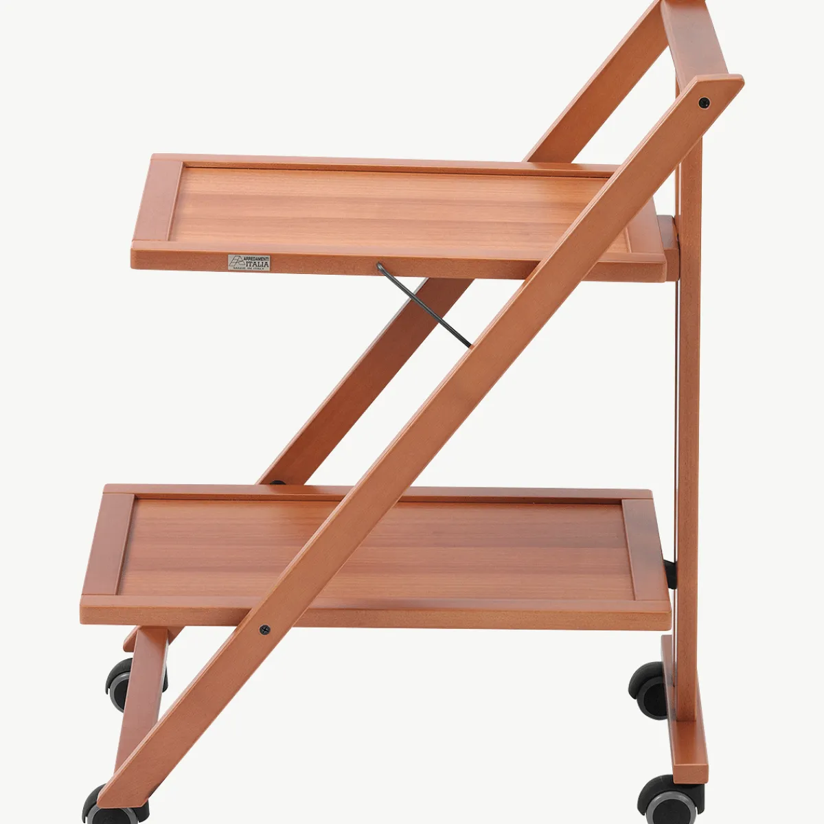 79 x 64 x 45 cm, Buchenholz, 2 Ablagen, Laminat, klappbar, Gummiräder.