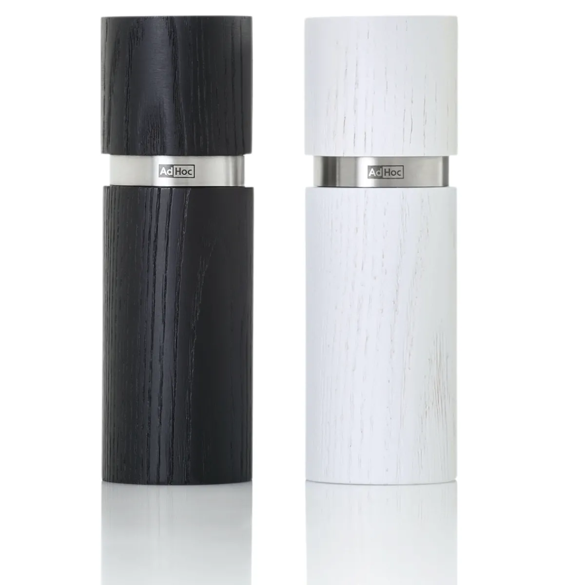 Hochwertiges Mühlen-Set aus lackiertem Buchenholz und Edelstahl in schlichtem Schwarz und Weiß. In den schlanken Formen: Leistungsstarke, stufenlos einstellbare Mahlwerke aus Keramik, die Salz und Pfeffer von grob über mittelkörnig bis fein mahlen. Geruchs- und geschmacksneutral dazu – so sind ein unverfälschtes Aroma und subtile Gewürznoten garantiert. Ausgezeichnet mit dem FORM# Designpreis von 2017 und bestens geeignet für alle schwarzen Pfeffer, Kubebenpfeffer, trockenes Meersalz oder Himalayasalz.