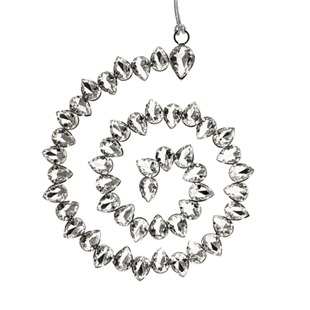 Leuchtende Spirale als Symbol für Entwicklung, Wachstum und Ausdehnung. Facettierte Glassteine, Größe: ca. L. 13,8 x B. 11,6 cm, Schnur: ca. L. 16 cm.