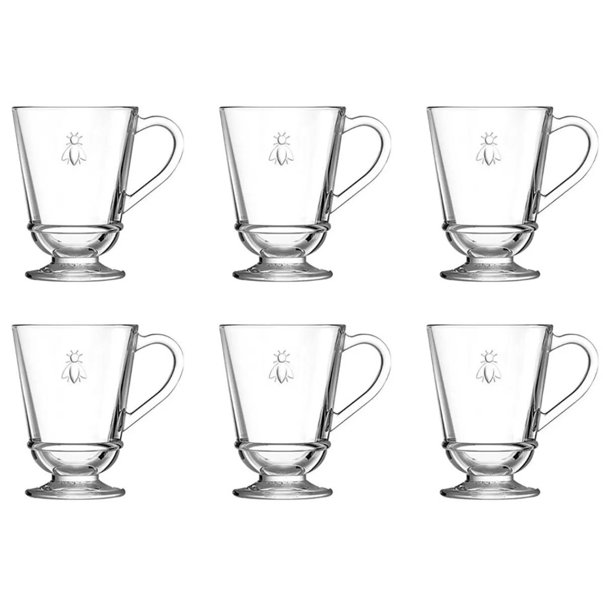Diese hochwertigen Teegläser stammen aus einer der ältesten Glasmanufakturen Frankreichs und werden traditionell mit Fuß in Holzformen hergestellt – erkennbar an den zwei charakteristischen Nähten. Die Serie aus robustem Glas trägt das Wappentier der Dynastie der Bonapartes: die Biene. Als Napoleons zum Kaiser gekrönt wurde, brauchte er neue Symbole und Erkennungszeichen. Als Wappentier wählte er das kleine Insekt, das fortan auf Hofmänteln, Lederwaren und Polstern, Teppichen und Fahnen auftauchte. Bei diesen Gläsern handelt es sich um eine neue Form des klassischen Bienen-Glases von La Rochère. Sie sind etwas höher und schlanker als ihre Vorgänger und eignen sich für Heißgetränke wie Tee, Kaffee, Kakao und Glühwein, für den täglichen Gebrauch wie für festliche Anlässe.