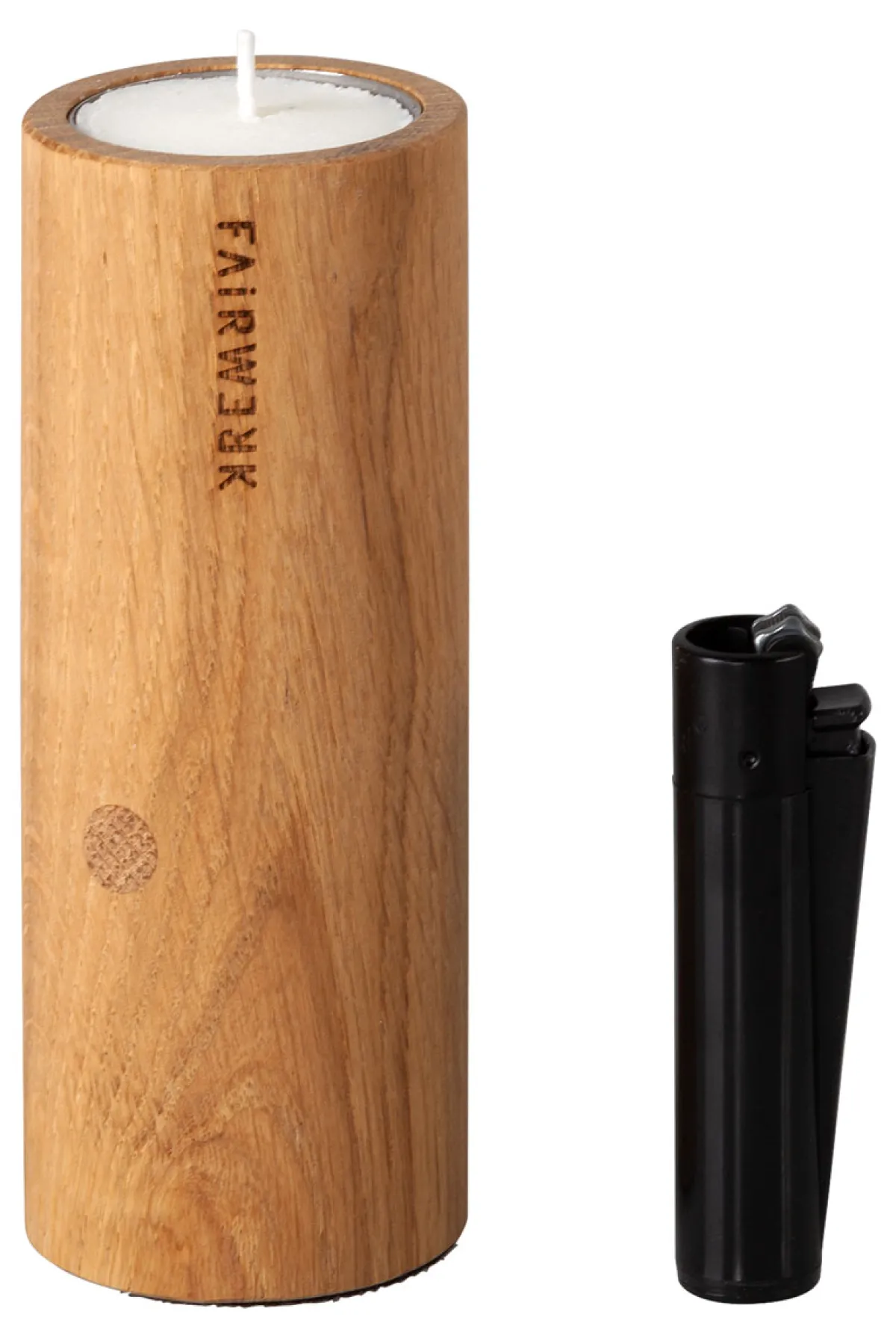 Ø 5 cm, 14 cm, Eiche geölt, Magnet, Teelicht, Feuerzeug.