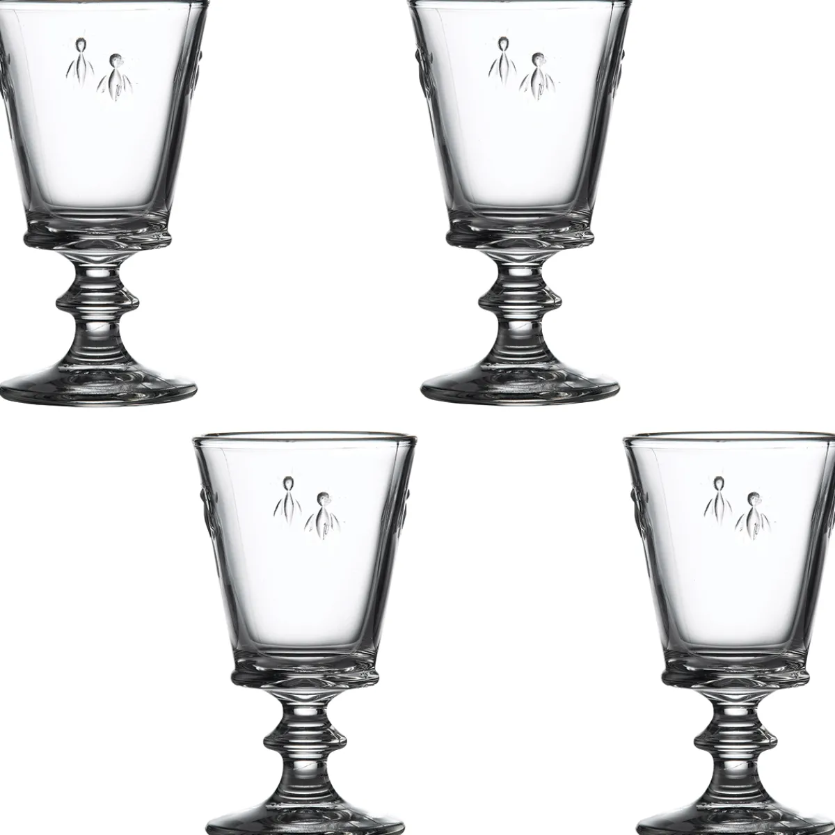 Diese hochwertigen Weingläser stammen aus einer der ältesten Glasmanufakturen Frankreichs und werden traditionell mit Fuß in Holzformen hergestellt – erkennbar an den zwei charakteristischen Nähten. Die Serie aus robustem Glas trägt das Wappentier der Dynastie der Bonapartes: Als Napoleons zum Kaiser gekrönt wurde, brauchte er neue Erkennungszeichen. Als Wappentier wählte er die Biene, die fortan auf Hofmänteln, Lederwaren und Polstern, Teppichen und Fahnen auftauchte. Die klassischen widerstandsfähigen Gläser mit Bienenmotiv eignen sich bestens für den täglichen Gebrauch sowie für festliche Anlässe.