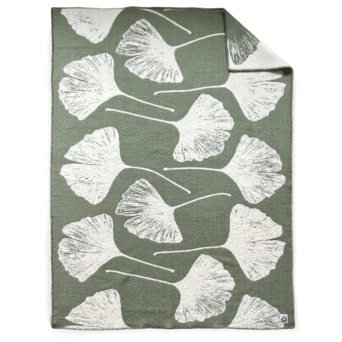 Waschbär Wolldecke Plaid »Ginkgo«, Moosgrün. Outlet